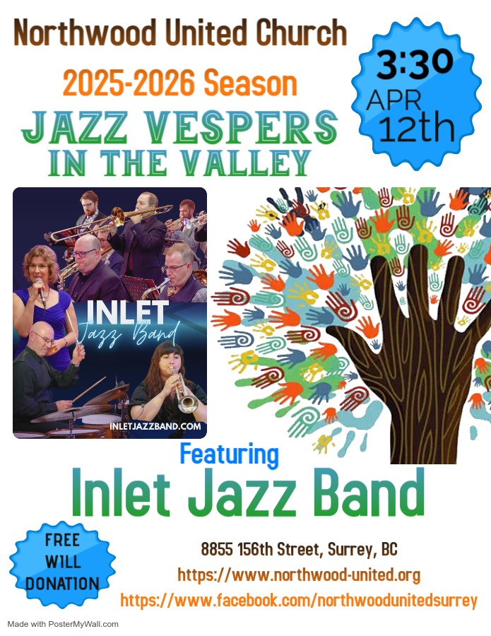 Founded in 1995 and based in Port Moody, BC, Inlet Jazz Band is known for their collaborations and projects that support young musicians locally and in Matanzas, Cuba. Inlet Jazz Band is committed to their community. Hear them live at Northwood United's Jazz Vespers, at Port Moody's Golden Spike Days, or have dinner at PoCo Legion while catching 2 hours of exciting music! Find IJB's upcoming performances at inletjazzband.com
